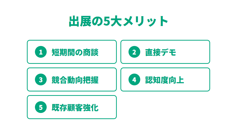 さらに、「〇〇展に出展しました」という実績自体が、取引先や見込み客に対する信頼性の証明にもなります。このように、展示会出展は短期的な商談獲得だけでなく、中長期的なブランド構築にも貢献します。