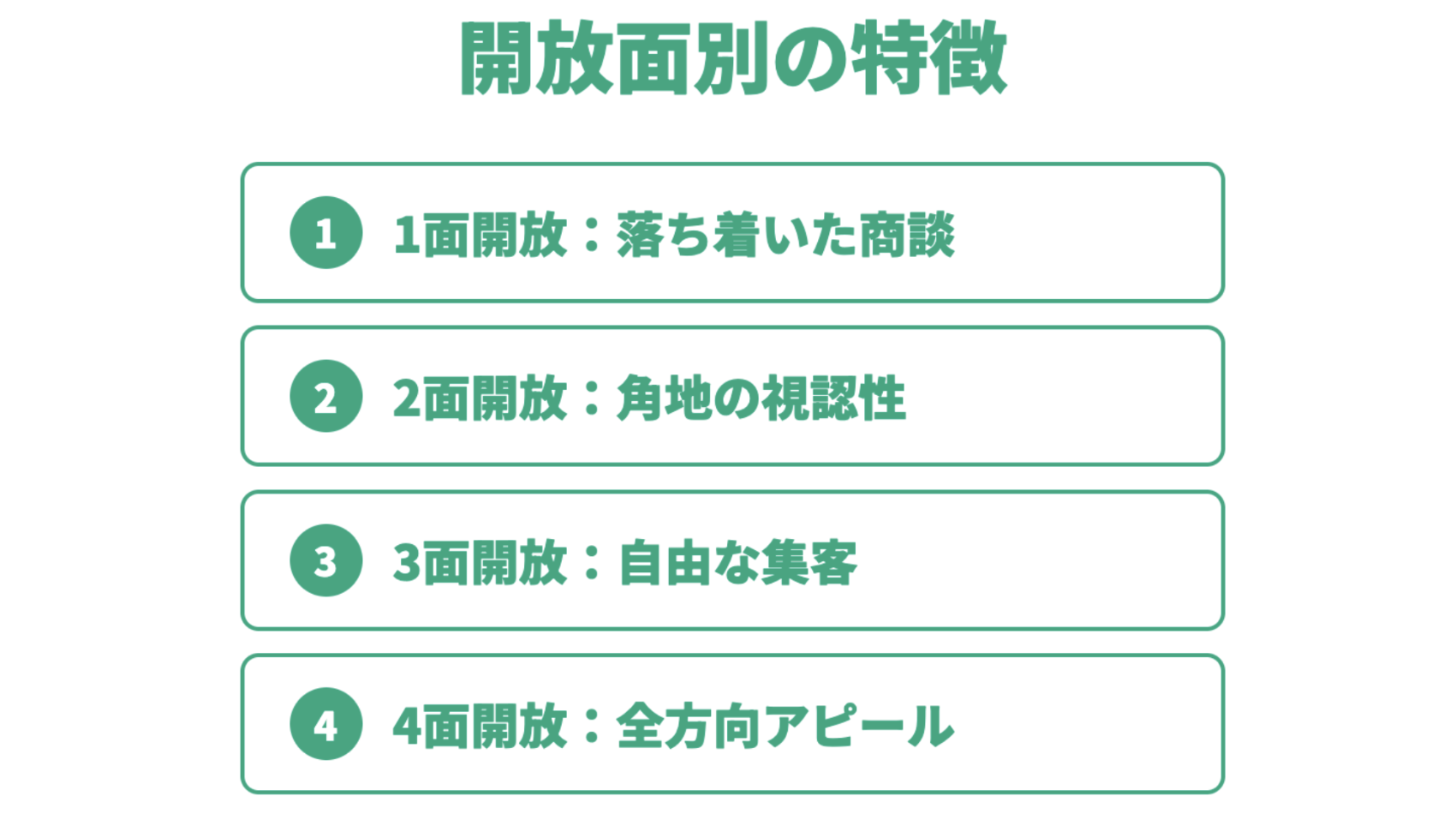 ここでは、1面開放から4面開放まで、それぞれの特徴と効果的な設計のポイントを解説します。自社のブース条件に合わせて参考にしてみてください。