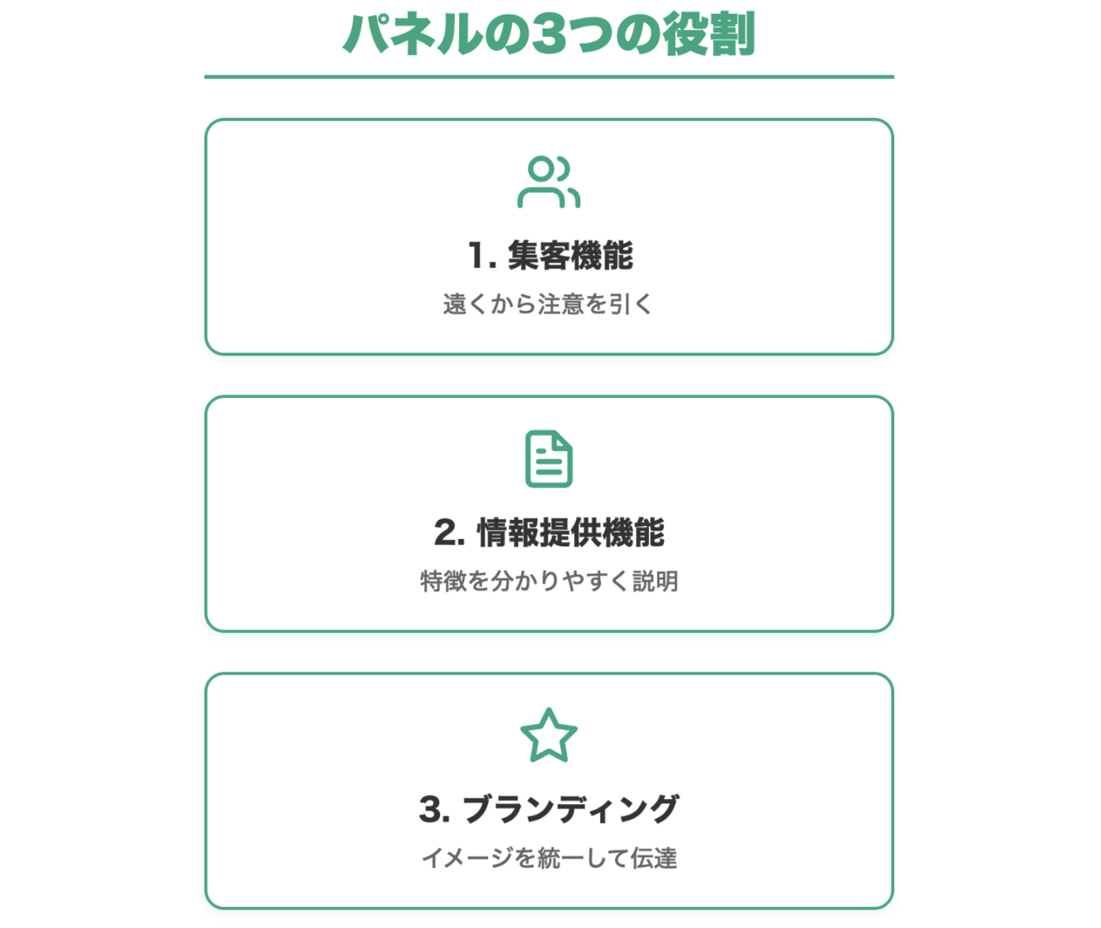 展示会パネルには、大きく分けて3つの役割があります。
