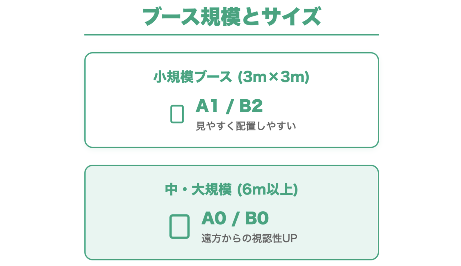 つまり、ブースの規模と視認性のバランスを考慮してサイズを選ぶことが、効果的な展示につながるということです。