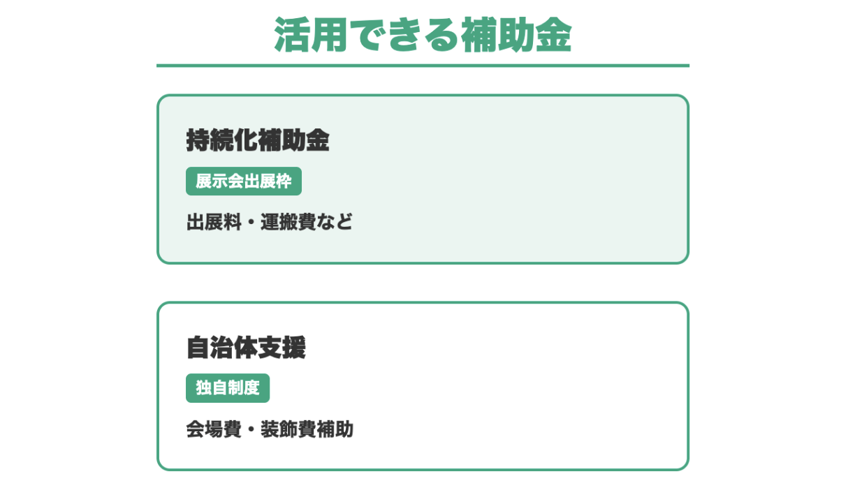 このような自治体独自の支援制度は、募集期間や対象条件が異なるため、自社の所在地を管轄する自治体のホームページや商工会議所の情報を確認してみることをおすすめします。助成金を上手に活用することで、展示会出展にかかる費用を抑え、より効果的な販路開拓が可能になります。