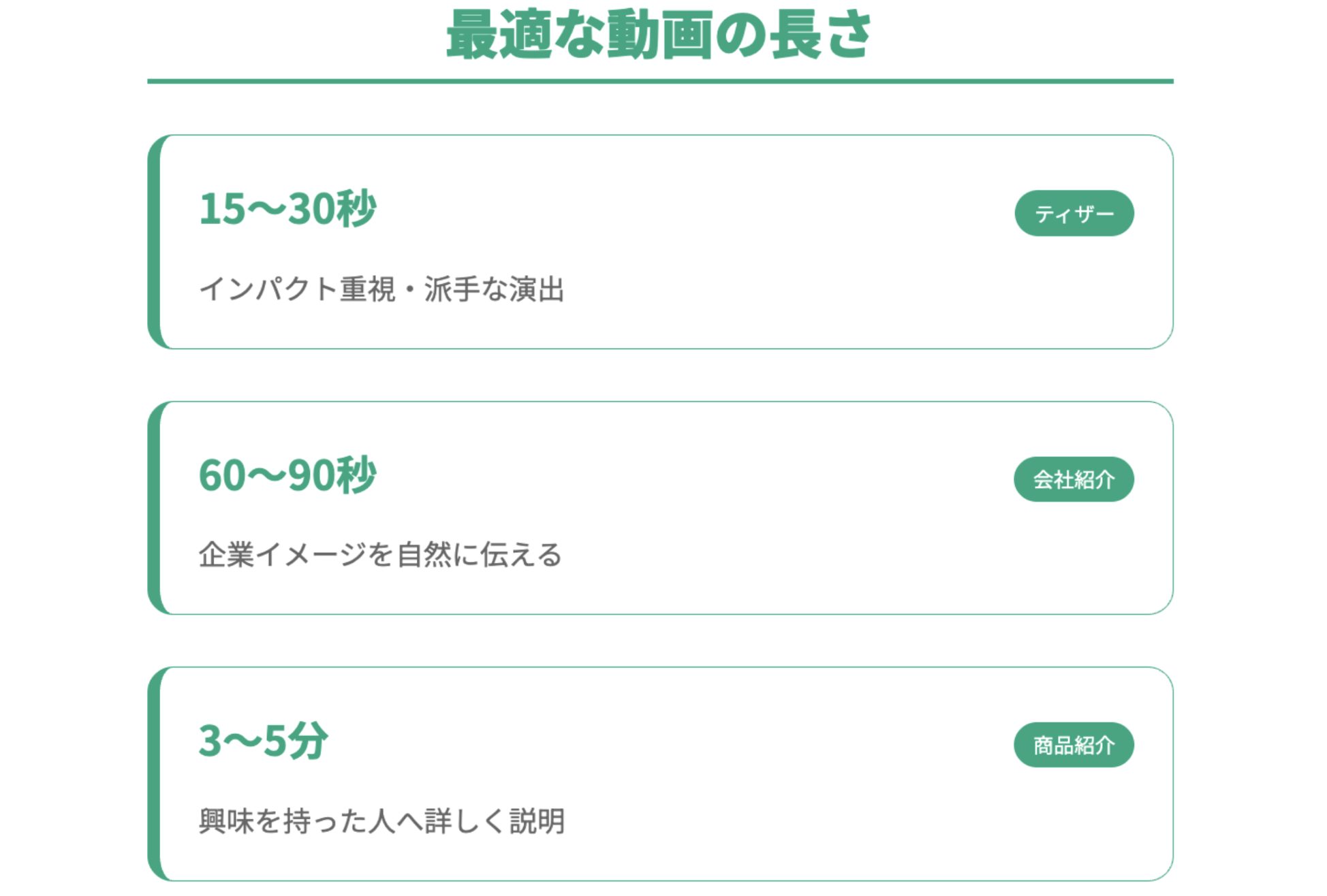 動画の長さは、目的によって最適な尺が異なります。